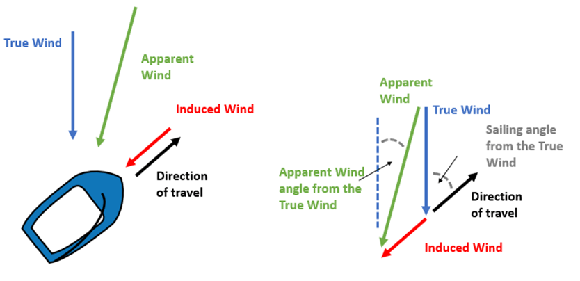 However, when a boat is sailing the movement forward creates a flow of wind directly opposite to the direction of travel, this is called the “Induced Wind”. The wind that you feel whilst driving down the motorway at mph isn’t a sudden hurricane, it is the induced wind due to your rapid movement against a mass of air.
